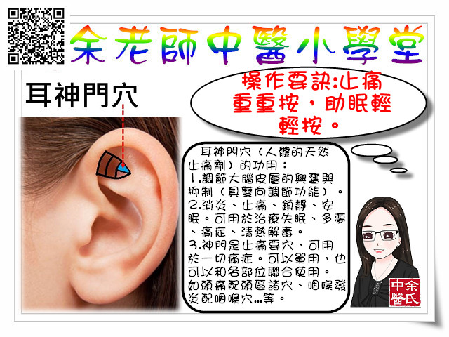耳神門是耳穴中使用率最高、功用最廣泛的穴位,
